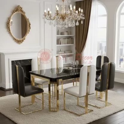 At SKF Decor Pvt. Ltd., we design luxurious and contemporary dining sets that elevate your space with style, comfort, and timeless elegance.