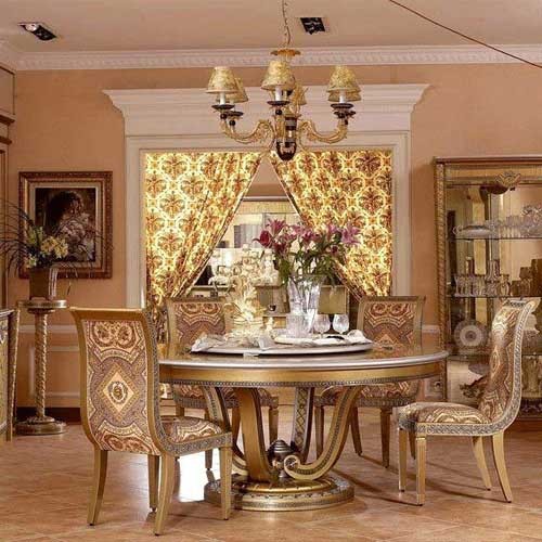 Bring a royal touch to your home with this magnificent 6-seater royal dining table set. Crafted with a premium-quality teak wood frame, the chairs are upholstered in rich purple fabric and finished with a brown and golden PU polish. Paired with a beautifully carved table, this set transforms your dining area into a regal and classic space. Turn every dinner into a royal experience. This design is the perfect blend of elegance and luxury, sure to leave your guests mesmerized.