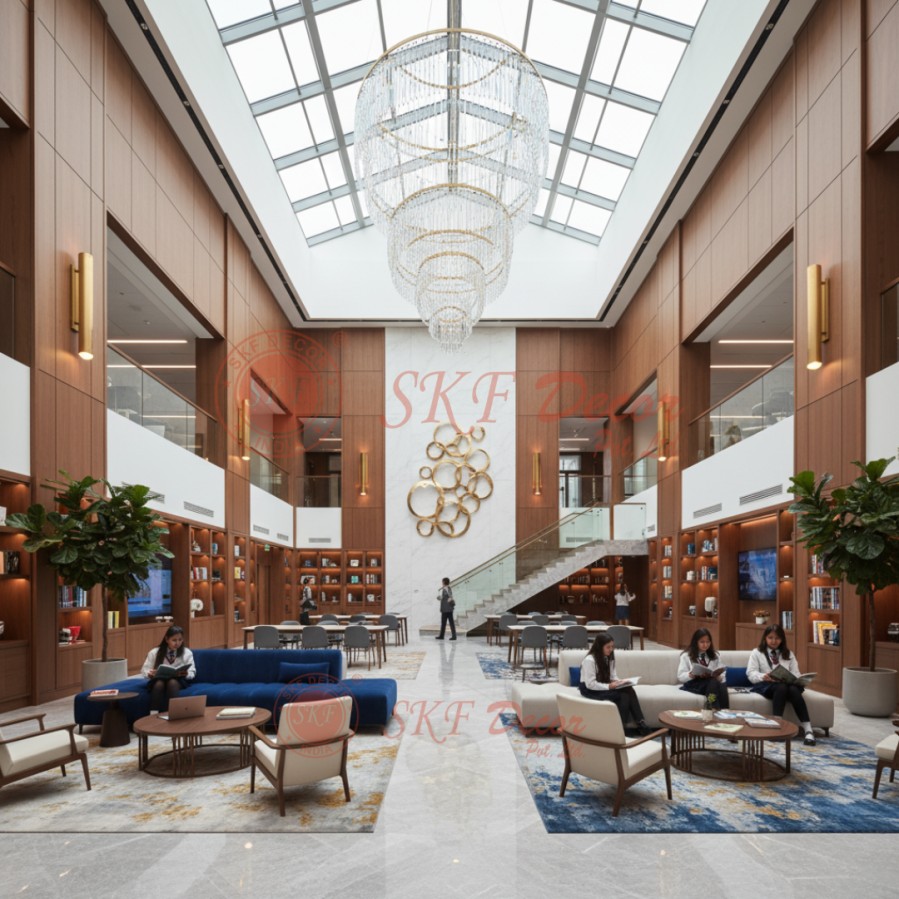 At SKF Decor Pvt. Ltd., we design modern, organised, and student-friendly library interiors