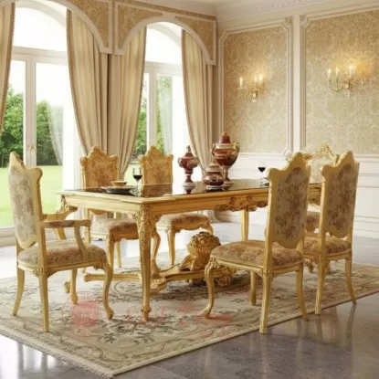 Royal Dining Set • Antique Gold Dining Table • Luxury Carved Furniture, Luxury 6 Seater Dining Table Set