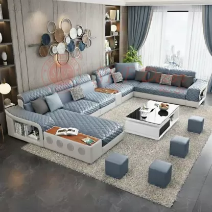 This ultra-modern luxury U-shape modular sofa set by SKF Decor Pvt. Ltd. is designed for customers who want comfort, technology, and premium styling — all in one masterpiece.