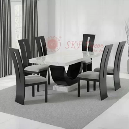 Give your dining space a modern and luxurious upgrade with this Marble 6 Seater Dining Set by SKF Decor Pvt. Ltd.