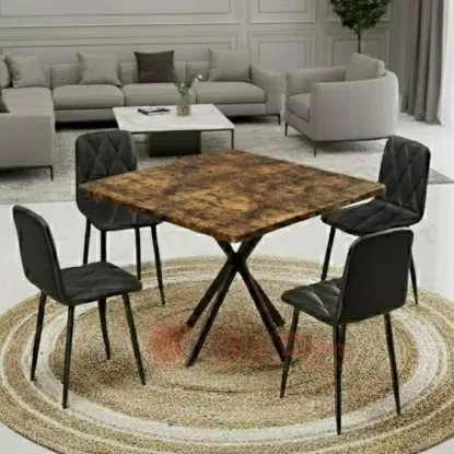 Designed especially for apartments, studio homes, and cozy dining corners, this set features a sleek square table with a natural textured finish and elegant metal legs that add both stability and charm.